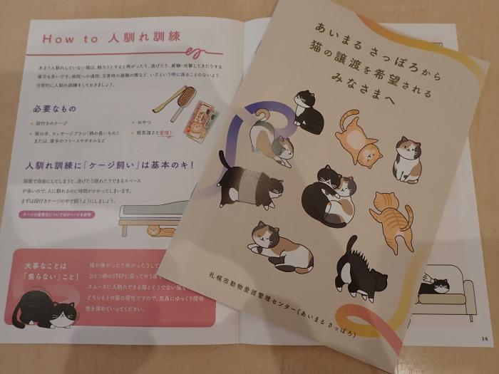 譲渡の条件や事前に準備しておくものなど、センターから猫の譲渡を受ける際に、みなさまに確認しておいてほしいことについてまとめたパンフレット「あいまる さっぽろから猫の譲渡を希望されるみなさまへ」を発行しました。