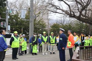 昨年(2024年)4月、山鼻小学校付近で登校中のお子さんと車が衝突する事故が発生したことを受け、警察や地域の関係者、企業等、約50名が集まり、山鼻小学校の交差点で街頭啓発を行い、入学式に参加する児童や父兄、自転車で通行する方、自動車のドライバーに向けて交通安全を呼びかけました。