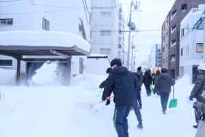令和5年2月21日(火曜日)午後5時から、札幌静修高校生徒の皆さんが曙第8町内会の除雪ボランティア活動を実施しました。ボランティア活動を行ったのは札幌静修高校ハンドボール部所属の生徒19名と顧問の先生2名。当日は、笹川町内会長の挨拶でスタート。曙第8町内会エリアのゴミステーション数か所とほたる橋近くにある町内会の防災倉庫、空き家住宅近辺等の除雪を実施しました。笹川町内会長は「私たち地域住民と学生による多世代交流ができた。札幌静修高校の皆さんには感謝している。」と喜んでいました。
