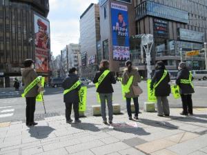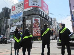 令和7年4月6日(日曜日)~4月15日(火曜日)までの「春の交通安全街頭啓発運動」に先駆け、4月4日(金曜日)午前11時から、札幌市中央区南4条西3・4丁目すすきの交差点において、「豊水地区交通安全指導委員会」、「豊水地区交通安全運動実践会」、「豊水地区交通安全母の会」の皆さんが街頭啓発活動を行いました。