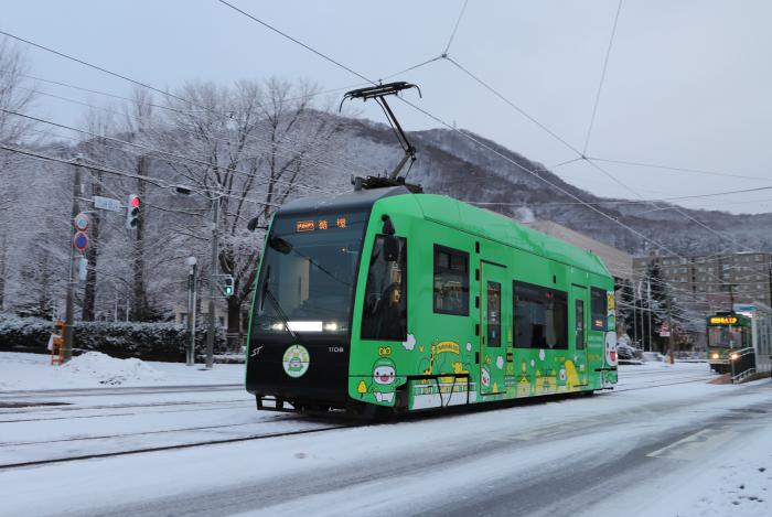 これから皆さんよろしくね!中央区マスコットキャラクター市電「中ウォークん号」運行開始 12月14日(水曜日)から、ラッピング市電「中ウォークん号」の運行が始まったよ。 |