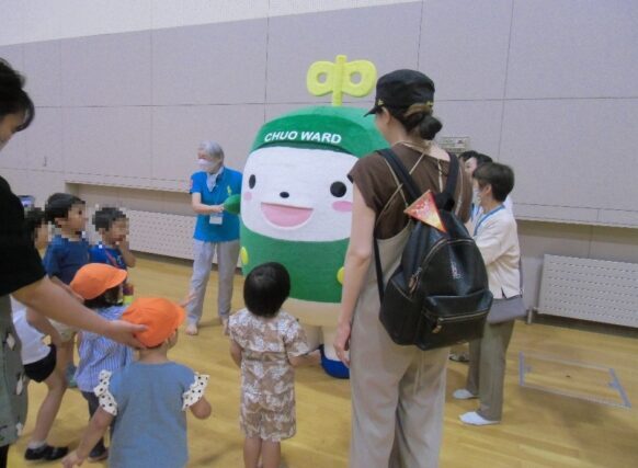 7月31日(木曜日)に中央区複合庁舎1階区民ホールで行われた「子育てサマーフェスタ」に参加したよ。 参加してくれたみんなと一緒に写真を撮ったり、アンパンマン体操を踊ったりして楽しかったよ! 元気いっぱいの笑顔で
