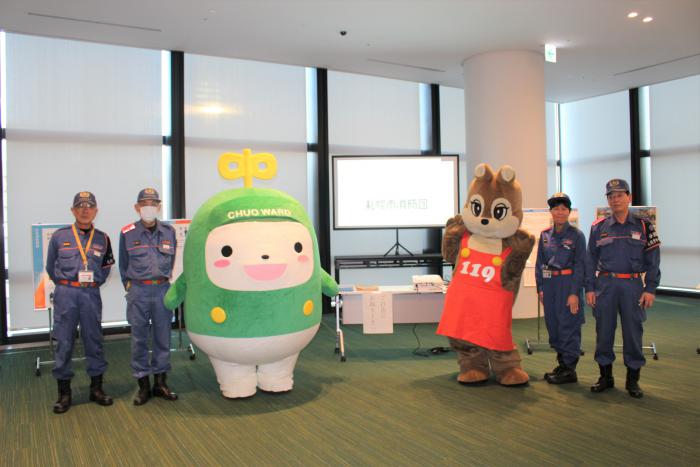 「春の火災予防運動」に参加しました! 4月21日(月曜日)に中央消防署が中央区複合庁舎区民ギャラリーで実施した「春の火災予防運動」のイベントに登場しました。 札幌市消防局マスコットキャラクターの「リスキュー」と一緒に火災予防を呼びかけたり、保健センターに健診に来てくれた子どもたちや来庁された方々と触れ合うことができたよ! |