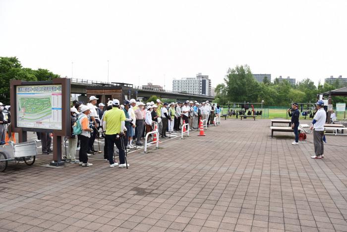 6月30日(金曜日)8時30分から豊平川緑地パークゴルフ場南大橋コースにおいて、中央区パークゴルフ協会(芥川統一(あくたがわ・とういち)会長)による「第23回中央区長杯パークゴルフ大会」が開催されました。