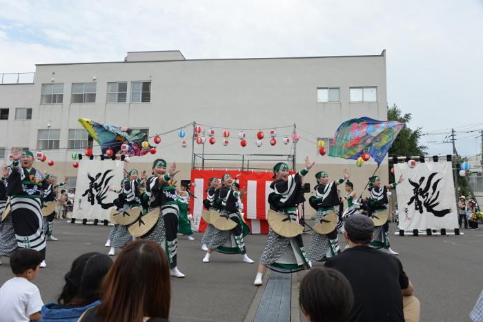 会場を屋外に移しての第二部では、「新琴似天舞龍神」や「粋~IKI~北海学園大学」によるよさこいの演舞が行われ、それぞれ巧みな技や華やかな踊りで観客を魅了しました。続いて、シンガーソングマジシャンの「たっち」によるマジックや楽器演奏、パントマイムを組み合わせたオリジナルパフォーマンスと「蹴道チアダンスクラブ」によるチアダンスが披露されました。