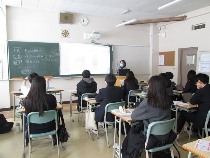 講義後に行われたアンケートでは、生徒から「朝食は自分が思っていたよりもとても大切で、栄養も取れるということが分かりました。これからは野菜と共にできるだけ食べる努力をしようと思います」などと感想が寄せられました。