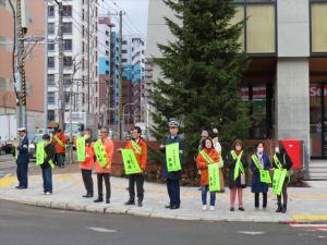 中央区複合庁舎付近の石山通沿いで、大通地区と西地区合同による春の交通安全街頭啓発活動が行われました。