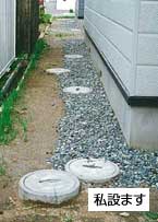 分流式の区域では、汚水は汚水排水管を通じて公共汚水ますへ、スノーダクトなどの雨水は雨水排水管より公共雨水ますへの接続が必要です。