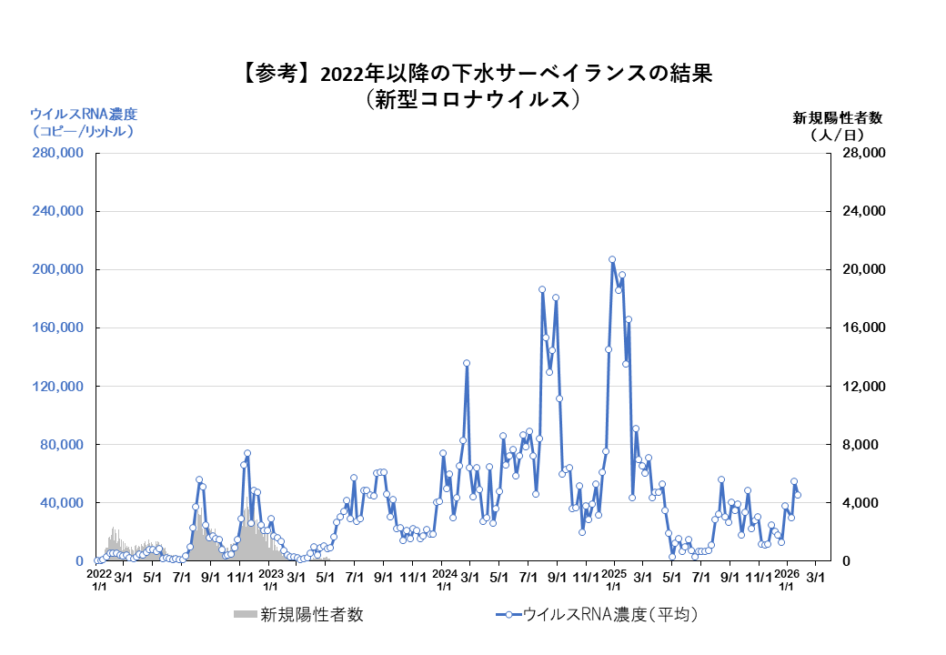 | 下水中のウイルスRNA濃度※1 | 163コピー/リットル |