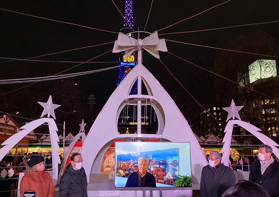 この日のセレモニーは、点灯式の他、札幌三育小学校による合唱、ミュンヘン市合唱団、ミュンヘン市長からのメッセージムービーが披露されました。