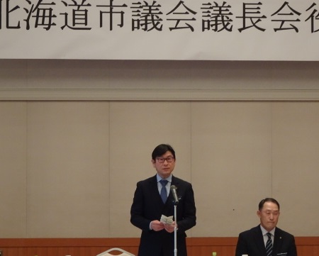 第87回北海道市議会議長会定期総会が苫小牧市で開催され、飯島議長、しのだ副議長が出席しました。