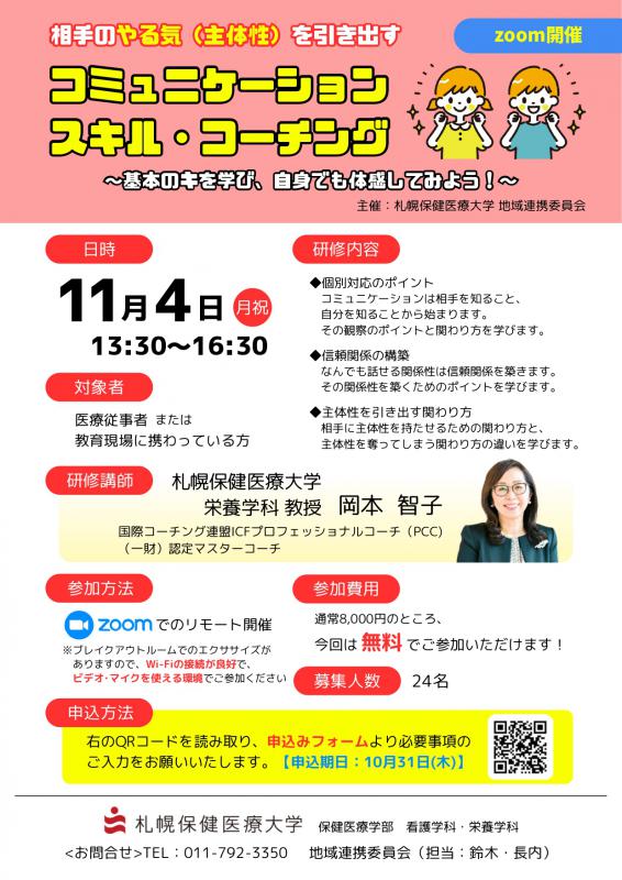 医療や教育に携わっている方で、「相手のことを知るためのポイント」「信頼関係の築き方」「主体性を引き出す方法」についてご興味のある方は、ぜひこの機会にご参加ください。