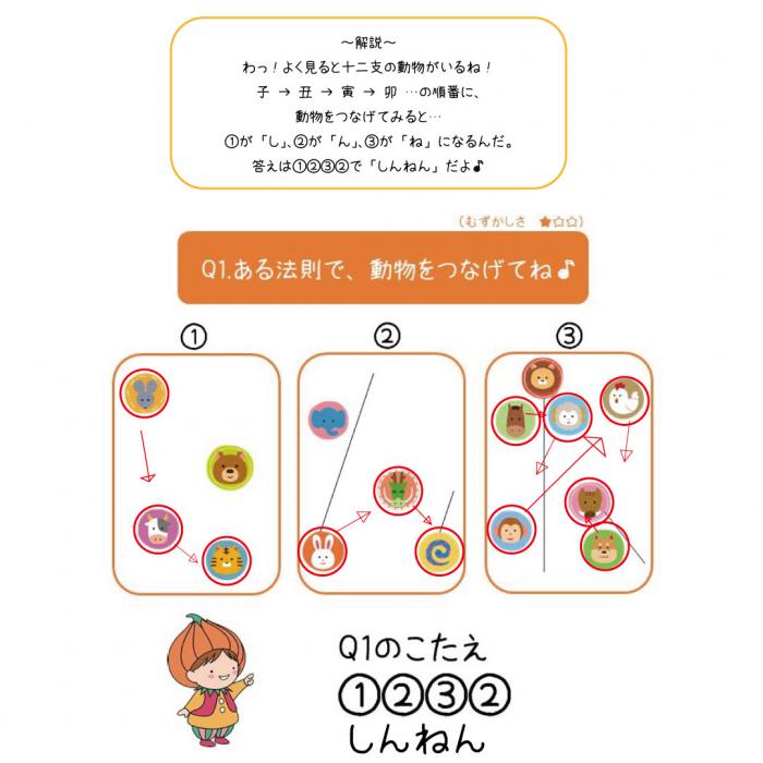 昨年末の謎解きのこたえは…Q1「しんねん」、Q2「もえれぬま」、Q3「たまねぎおいしい」でした~! DMで答えを送ってくれていた人には、新作イラストを送るね!挑戦してくれてありがとう★