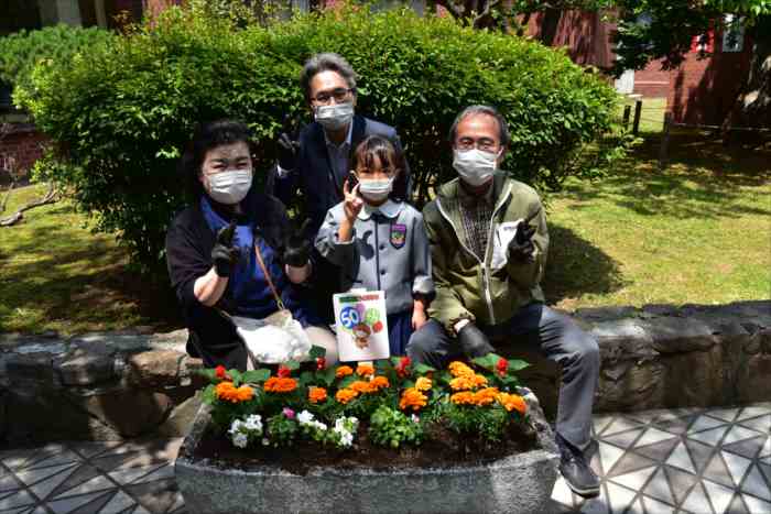 参加の記念品としてミニひまわりとコスモスの種をいただいたようですので、いずれ丘珠ふれあいセンターの花壇で花を咲かせることになると思います。