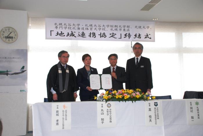 札幌丘珠空港で、東区役所、札幌大谷大学・札幌大谷大学短期大学部、天使大学、北海道スポーツ専門学校(旧専門学校北海道体育大学校)の締結式を実施。