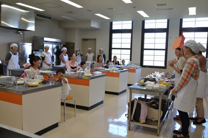 講師となった学生は、リハーサル等で練習をかさねてきており、当日の進行も巧みで、参加した親子は楽しそうに料理をしていました。