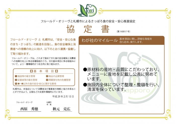 札幌市と「さっぽろ食の安全・安心推進協定」を締結した「フルールド・オリーヴ」の「マイルール」(食の安全・安心のために特に重点的に取り組んでいく事項)をご紹介します。