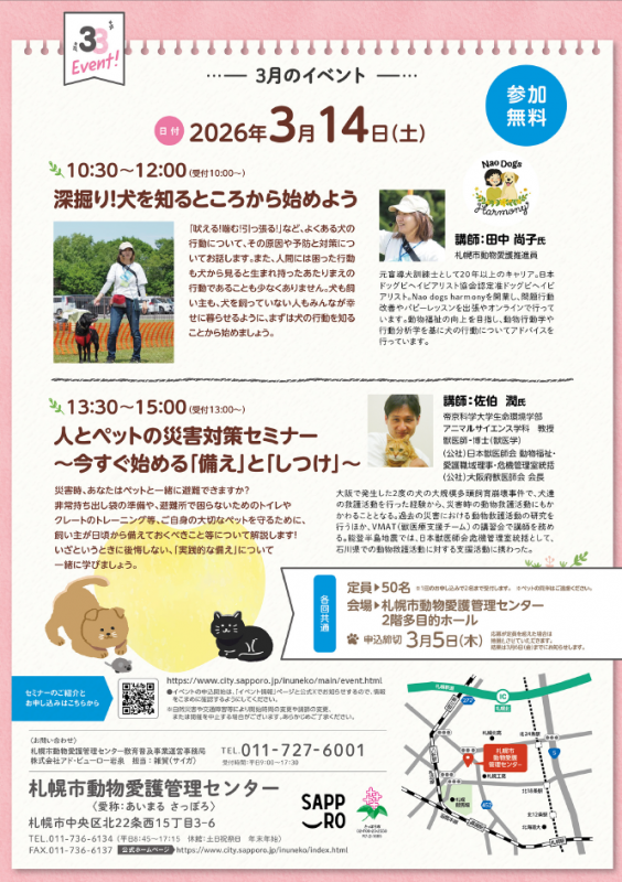 札幌市動物愛護管理センター(あいまる さっぽろ)が主催・共催しているイベントの情報です。