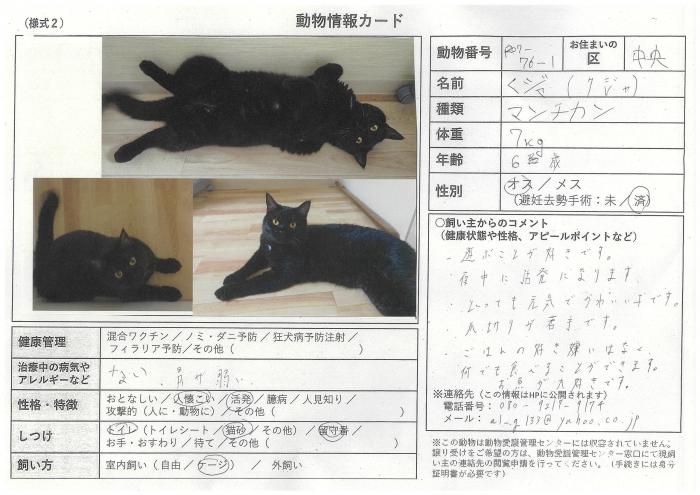 - 掲載されている猫を飼いたい方は、免許証、健康保険証など住所、氏名、年齢を証明できる公的書類をお持ちの上、動物愛護管理センター(札幌市中央区北22条西15丁目3-6)の窓口で譲りたい方の連絡先の閲覧申込をしてください。