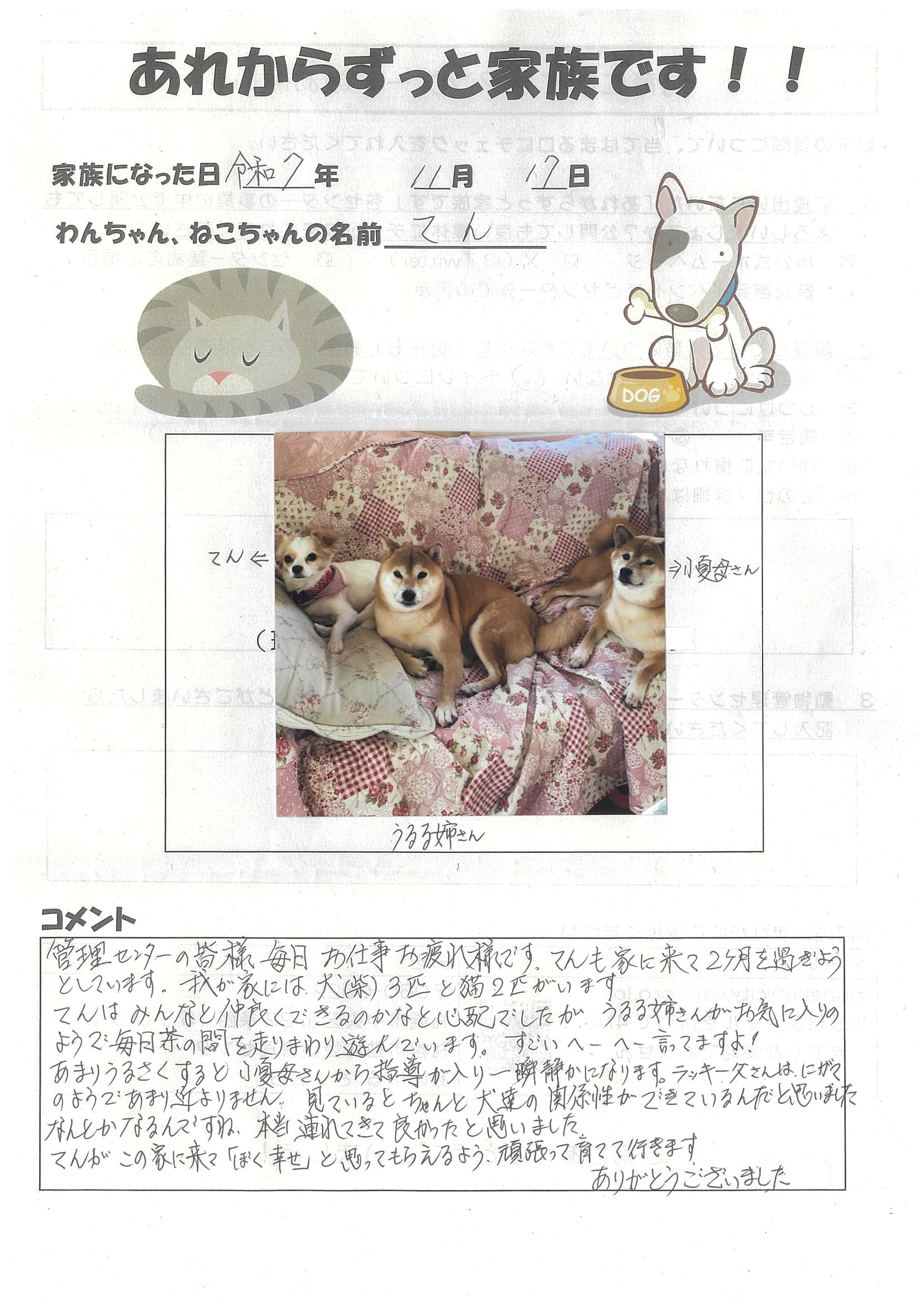 お便りをくださった新しい飼い主の皆様、ありがとうございます。