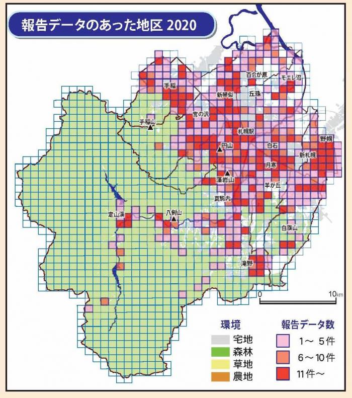 調査した区画数は387地区(1キロ四方の単位)で、市内の市街地の大部分を調べることができました。