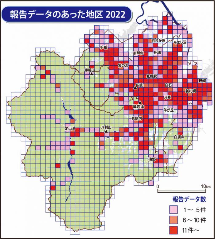 調査した区画数は446地区(1キロ四方の単位)で、最も多くの地区を調べることができました。
