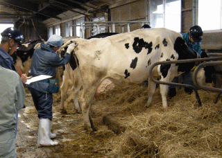 ![]() 牛の結核検査(法定)の様子 |