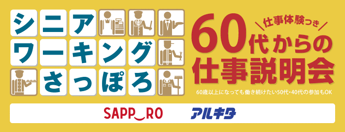 札幌市では、60歳以上のシニア層を対象とした体験付き仕事説明会「シニアワーキングさっぽろ」を開催しています。