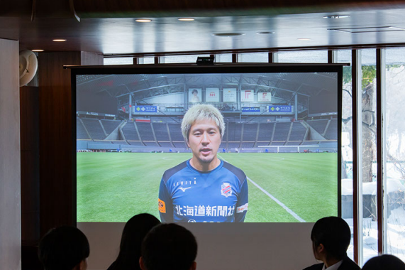 試食の後には、北海道コンサドーレ札幌の宮澤裕樹選手から、ビデオメッセージをいただきました。