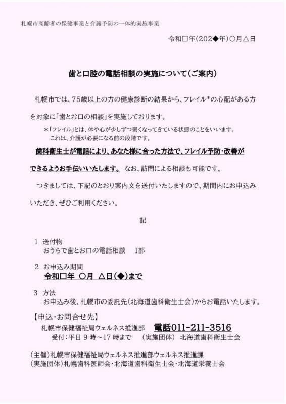 ご案内に記載のある札幌市保健福祉局ウェルネス推進課の電話番号へお電話下さい。