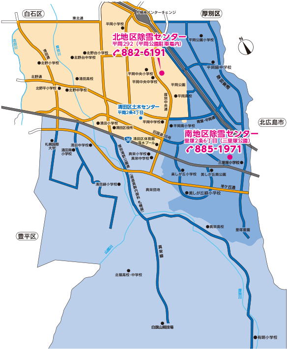 | 北地区 | 清田区平岡292(平岡公園駐車場内) | 011-882-6191 |