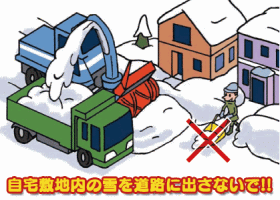 (1)道路の雪の排雪を行うもので、個人や企業が処理すべき宅地内・屋根・駐車場などから出される雪は対象となりません。自宅敷地内の雪を道路へ出さないようお願いします。