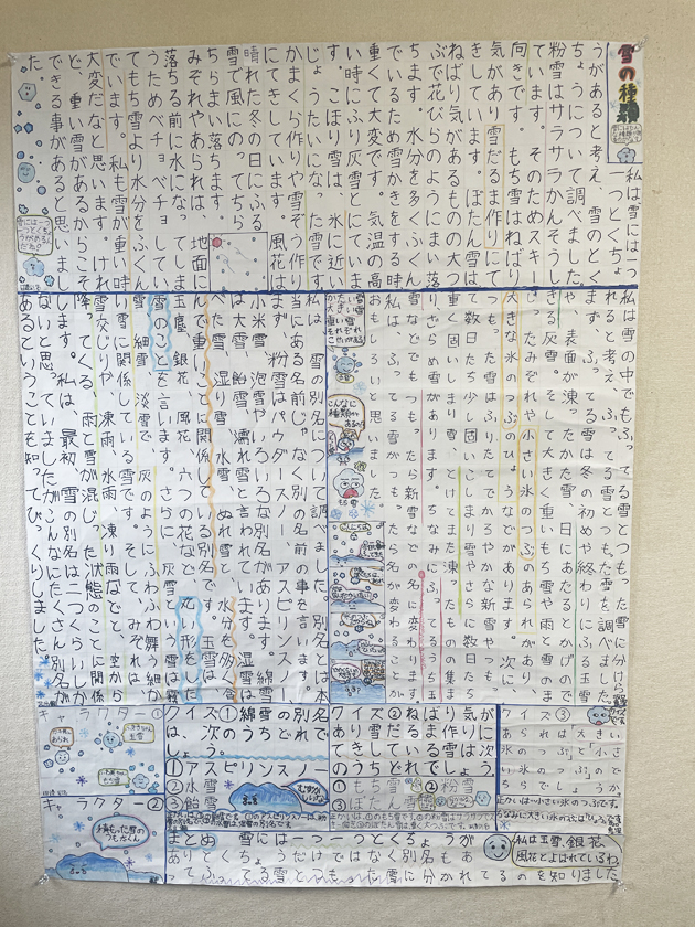 【作品部門】 ①テーマ 冬や雪に関するものを題材としており、作品のテーマが明確である。 ②学ぶ意欲 作品を作るために深く調べたり、観察したりするなどの努力を感じ る。 ③伝える姿勢 読み手のことを考え、分かりやすく、あるいは心に響くように作られ ている。 ④表現 その人ならではの言葉選び、色使い、アイデア、視点が含まれてい る。 ⑤構成 全体のレイアウトやバランスが整っている。 |