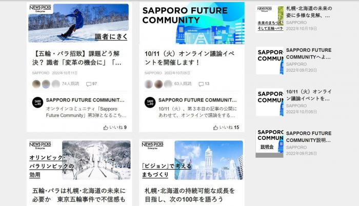 札幌市とNewsPicksは、まちづくりや2030冬季オリンピック・パラリンピックなどについて議論するオンラインコミュニティ「SAPPORO FUTURE COMMUNITY」を2022年9月20日に連携して立ち上げ、約1か月半にわたって議論を行ってきました。