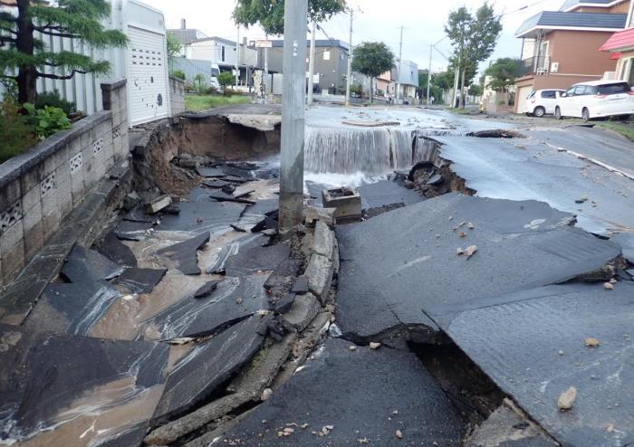 この未曽有の地震は、札幌市東区において震度6弱を観測したほか、市内の広い範囲で震度5弱以上の強い揺れに見舞われ、死者3名、負傷者295名もの人的被害が発生し、清田区の液状化現象による多くの住宅被害や、市内各地において、多くの箇所で道路の隆起や陥没、断水などが発生しました。
