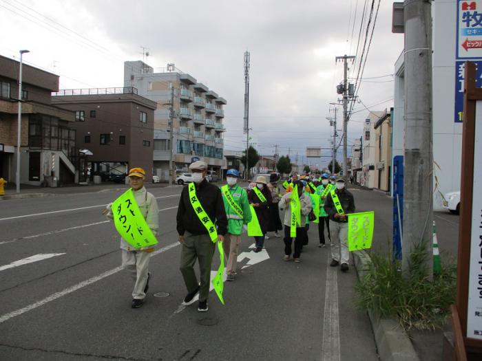 少し肌寒い秋模様の天気でしたが、町内会長をはじめとした地域の方々が集まり約50名が参加。北警察署や北消防署新光出張所、交通安全実践会、交通安全母の会、札幌北交通安全協会、少年消防クラブなど多くの皆様のご協力を得て開催されました。