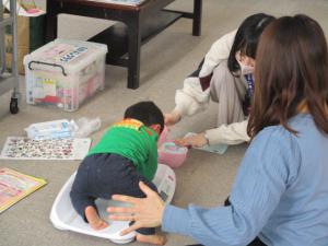 この日は北区保健センターから保健師さんが来て、お子さんの健康相談や、身体測定(体重、身長)を行いました。