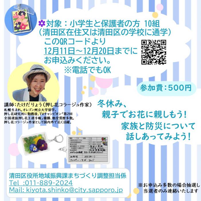 冬休み、親子で作品づくりに挑戦してみよう!2025年1月10日(金)に、区役所で「押し花を使った作品づくり体験会」を開催。