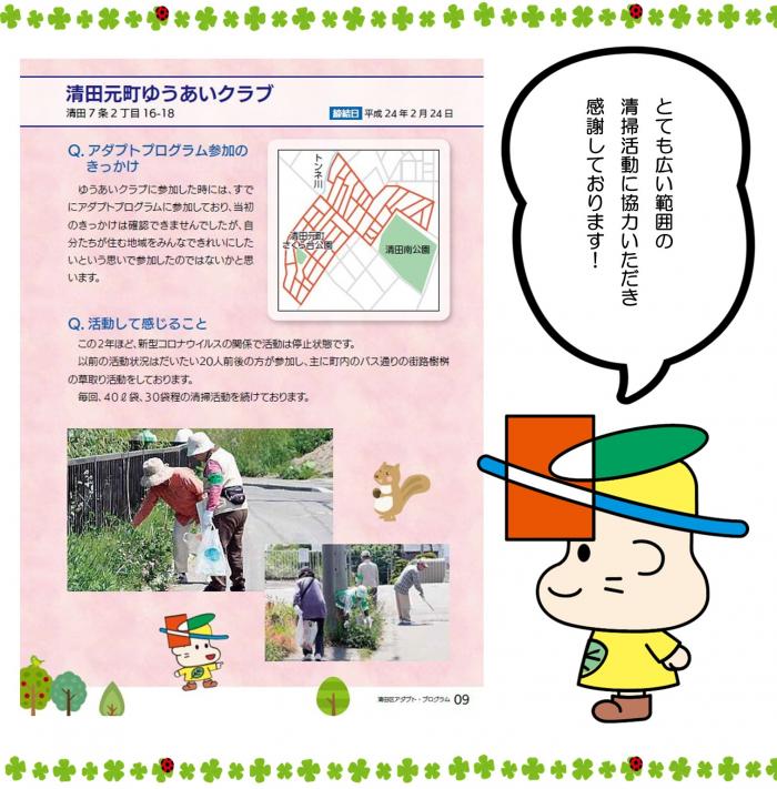 以前紹介したアダプトプログラムパンフレットでは、制度についても詳しく掲載しているよ♪清田区のキレイな街をみんなで守っていこう‼