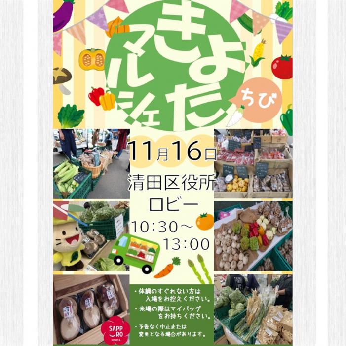 11月16日、野菜直売イベント「きよたちびマルシェ」を清田区役所ロビーで開催するよ!10時30分頃販売開始!