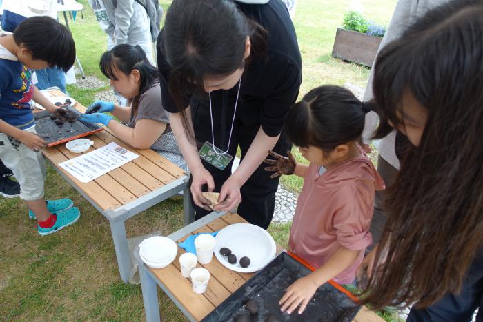 札幌国際大学のイネーブルガーデンで緑に囲まれながらたねだんごをつくり、おうちにも緑を増やしませんか?