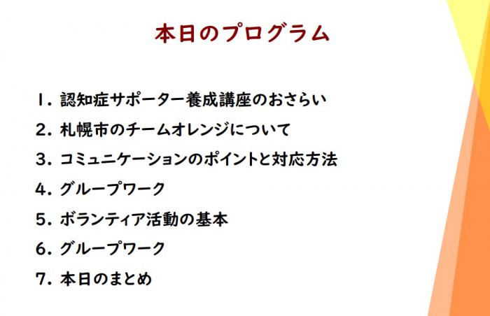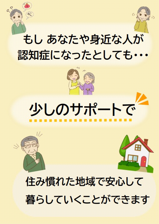 認知症になっても安全・安心に暮らせるように、地域における認知症の理解者である「認知症サポーター」を養成する講座です。