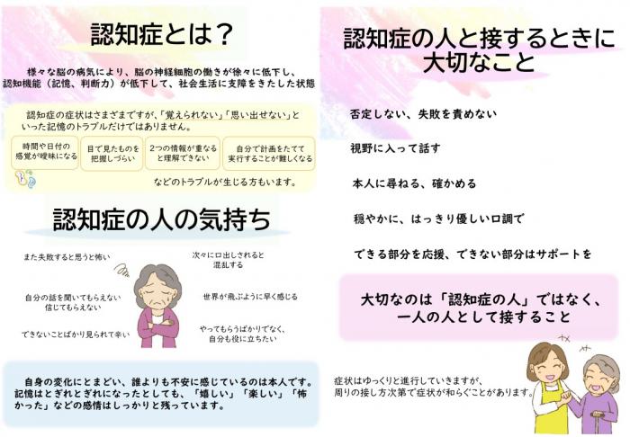内容:認知症ってどんな病気?認知症の方との接し方は?介護をする家族の気持ちは?など