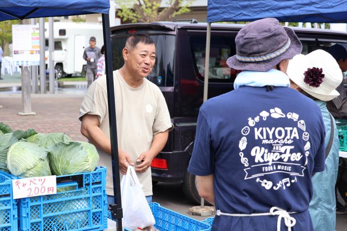 「きよたマルシェ」では、きよたスイーツの販売ブースや清田区内の飲食店による飲食販売ブースが設けられたほか、地元農家による直売「軽トラ市」が行われ、どのブースも長い行列ができていました。軽トラ市では、来場した方々が、出店している農家の方から美味しい野菜の調理方法を教えてもらい、会話を楽しみながら野菜を購入している姿が見られました。