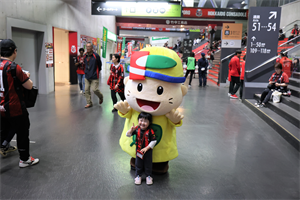 各マスコットは、場内コンコースで来場者と記念撮影をしたり、ピッチサイドでコンサドールズのパフォーマンスを盛り上げたりするなど、精力的に活動していました。