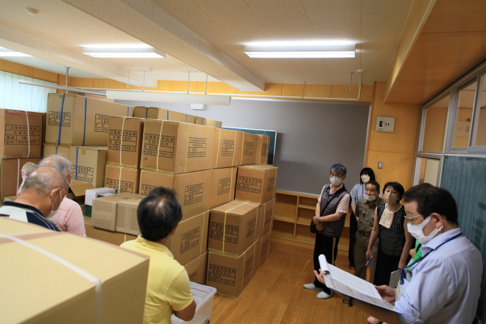 参加者は、避難所開設に係る基礎知識や運営イメージの講義を受けたのち、実際に学校内の受水槽などの各施設や備蓄物資の保管場所を確認しました。