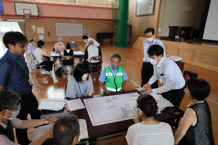 これは、避難所の運営を担当する区の職員、避難所となる学校の教職員、地域住民が参加し、避難所となる学校の施設等の確認や避難所運営に係る適切な初動対応の確認を行い、災害時の避難所開設、運営能力の向上を図ることを目的に実施されたものです。
