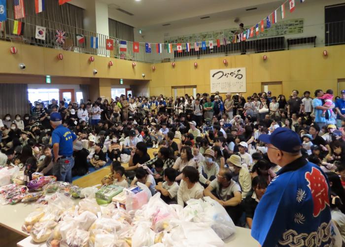まつりのフィナーレ抽選会は、会場に入りきれない人で賑わい、当選した人はお菓子や野菜の詰め合わせ、日用品やといった景品を嬉しそうに受け取っていました。