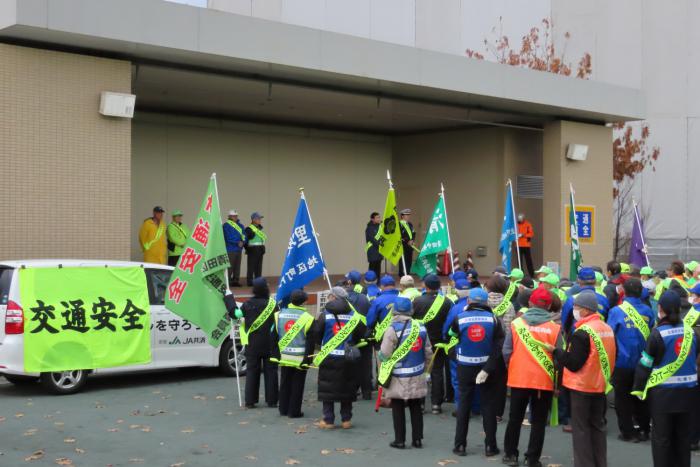 集会では主催者の清田区市民部長や来賓の豊平警察署、町内会連合会連絡協議会会長から、それぞれ交通安全を呼びかける挨拶があり、参加者の皆さんは交通安全の意識を新たにしました。