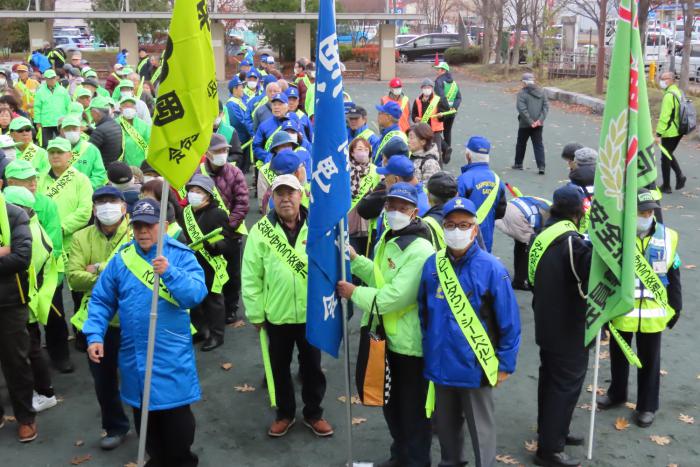 清田区5地区の町内会、交通安全指導員会、交通安全母の会などの関係機関・団体から総勢約310名が集まり、里・美地区からは町内会連合会や各町内会の役員の皆さんなど、約50名が参加しました。